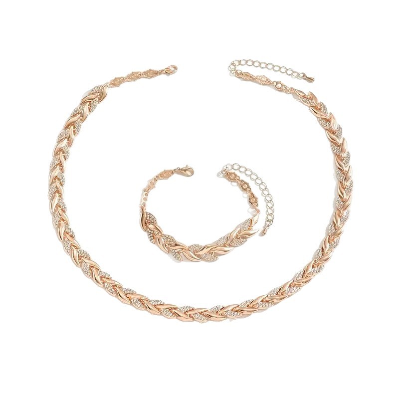 2PCS Glass Leaf Necklace Set Elegant Rhinestone Chain Necklace Bracelet For Women Fashion Luxury Jewelry Set